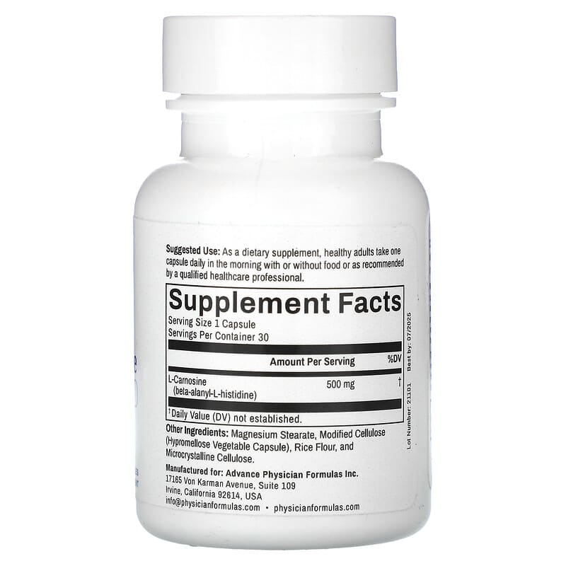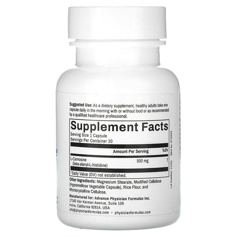 Inform when this item available: Advance Physician Formulas, L-Carnosine, 500 mg, 30 Capsules - 30 Count / 0.02 / 0.05