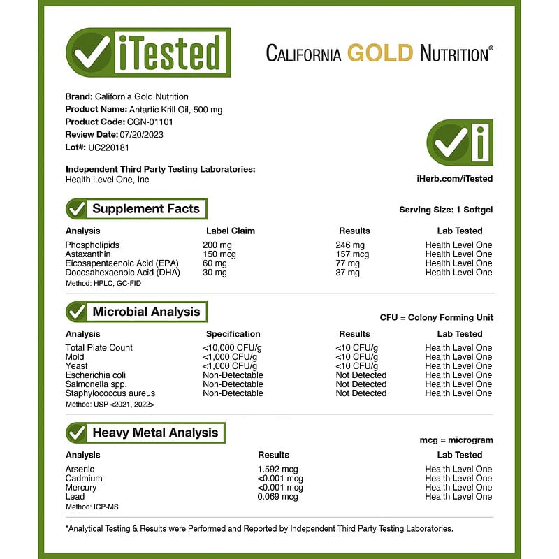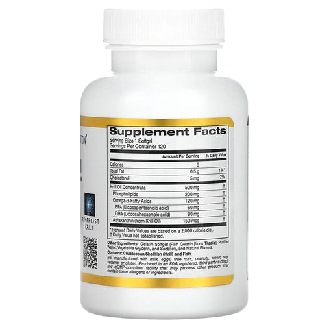 California Gold Nutrition, Antarctic Krill Oil, Omega-3 Phospholipids Complex with Astaxanthin, Natural Strawberry and Lemon, 500 mg, 120 Fish Gelatin Softgels