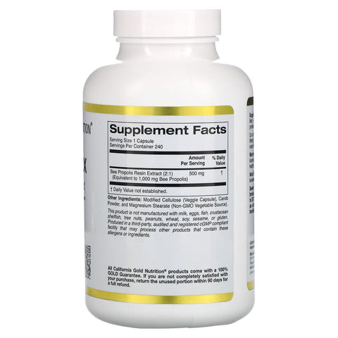 California Gold Nutrition, Bee Propolis 2X, Concentrated Extract, 500 mg, 240 Veggie Capsules - 240 Count / 0.18 / 0.4