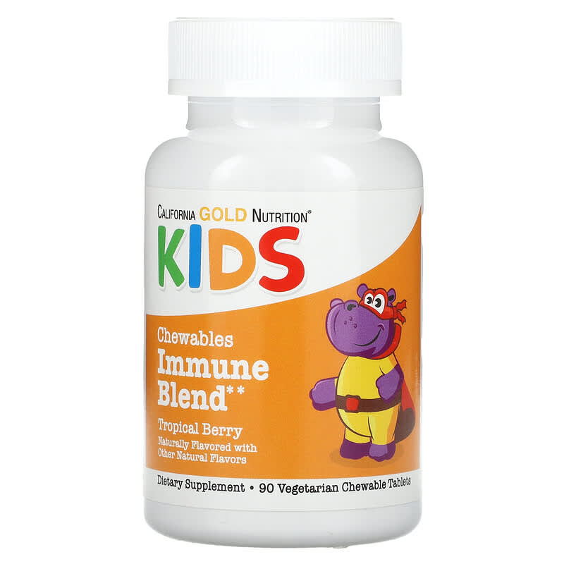 California Gold Nutrition, Chewable Immune Blend with Vitamin A, Vitamin C, Vitamin E, and Zinc for Children, Natural Tropical Berry, 90 Vegetarian Tablets
