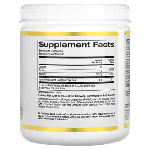 Inform when this item available: California Gold Nutrition, Hydrolyzed Marine Collagen Peptides, Unflavored, 7.05 oz (200 g) - 199.86 g / 0.27 / 0.6