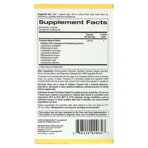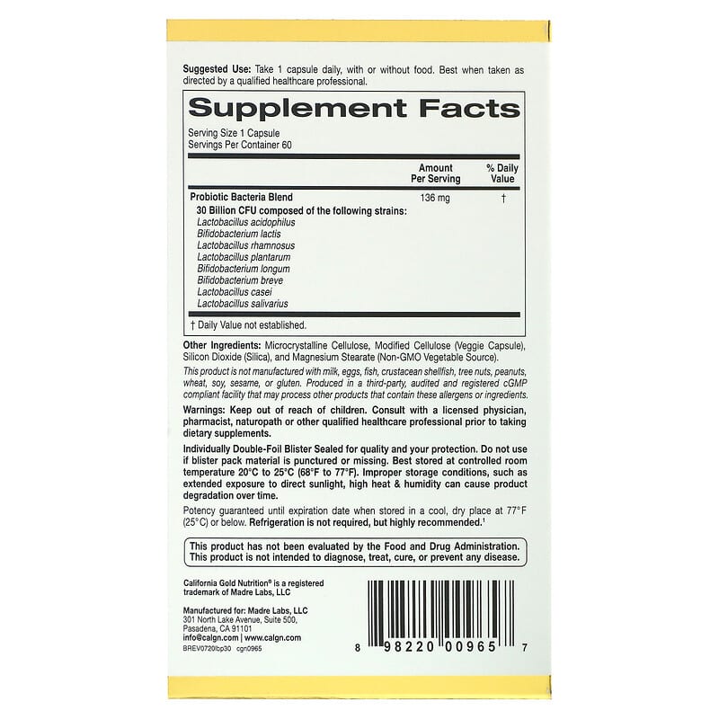 Inform when this item available: California Gold Nutrition, LactoBif® 30 Probiotics, 30 Billion CFU, 60 Veggie Capsules - 60 Count / 0.07 / 0.15
