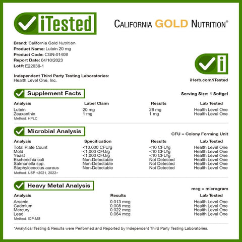 Inform when this item available: California Gold Nutrition, Lutein with Zeaxanthin from Marigold Extract, 20 mg, 60 Veggie Softgels - 60 Count / 0.05 / 0.11