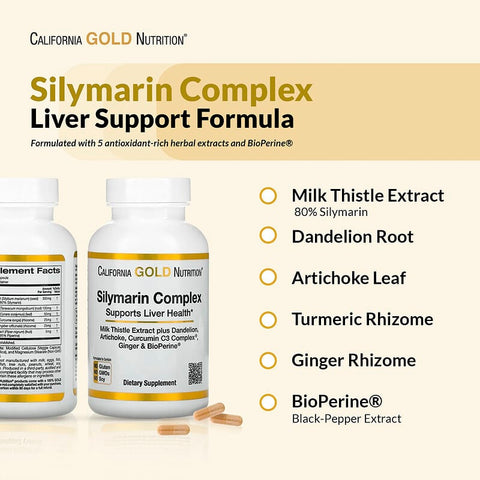 Inform when this item available: California Gold Nutrition, Silymarin Complex with Milk Thistle Extract Plus Dandelion, Artichoke, Ginger, and BioPerine®, 360 Veggie Capsules - 360 Count / 0.27 / 0.6