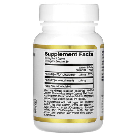Inform when this item available: California Gold Nutrition, Vitamin D3 + K2 as MK-7, 60 Veggie Capsules - 60 Count / 0.02 / 0.05