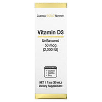 Inform when this item available: California Gold Nutrition, Vitamin D3, Unflavored, 50 mcg (2,000 IU), 1 fl oz (30 ml) - 29.57 ml / 0.08 / 0.18