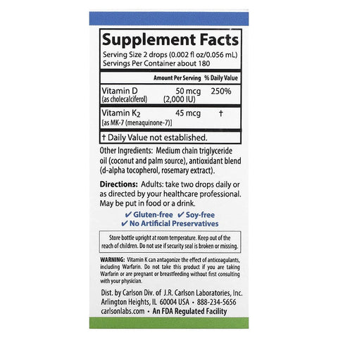 Inform when this item available: Carlson, Super Daily® D3 + K2, 0.34 fl oz (10.16 ml) - 10.05 ml / 0.05 / 0.11