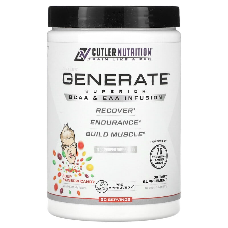 Cutler Nutrition, Generate, Superior BCAA & EAA Infusion, Sour Rainbow Candy, 12.95 oz (367 g) Sale