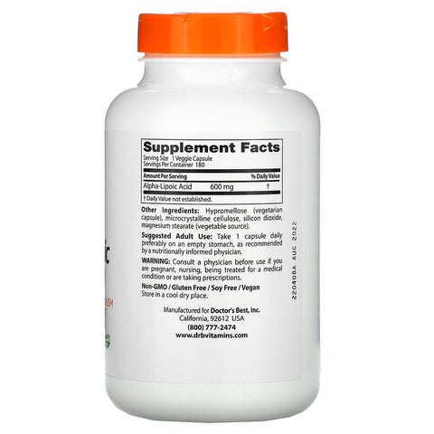 Inform when this item available: Doctor's Best, Alpha-Lipoic Acid 600, 600 mg, 180 Veggie Caps - 180 Count / 0.2 / 0.432
