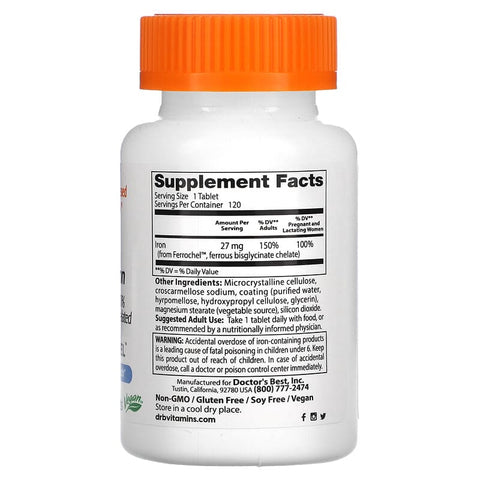 Inform when this item available: Doctor's Best, High Absorption Iron, 27 mg, 120 Tablets - 120 Count / 0.08 / 0.18