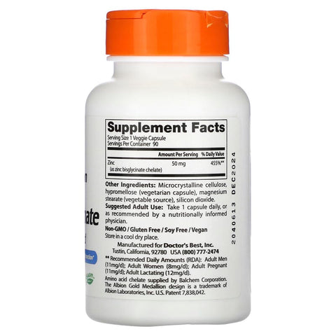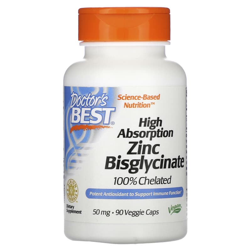 Inform when this item available: Doctor's Best, High Absorption Zinc Bisglycinate, 50 mg, 90 Veggie Caps - 90 Count / 0.05 / 0.1
