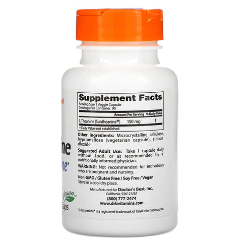 Inform when this item available: Doctor's Best, L-Theanine, 150 mg, 90 Veggie Caps - 90 Count / 0.06 / 0.126