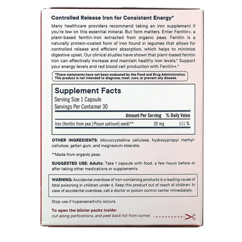 Inform when this item available: Flora, Ferritin+®, Plant-Based Ferritin Iron, 30 Delayed Release Vegan Capsules (20 mg per Capsule) - 30 Count / 0.05 / 0.11