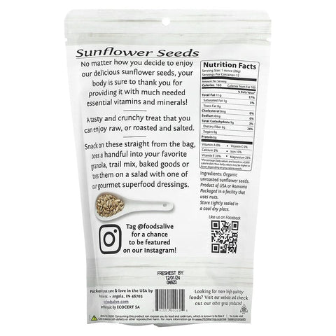 Inform when this item available: Foods Alive, Organic Sunflower Seeds, Hulled, 12 oz (340 g) - 340.19 g / 0.36 / 0.8