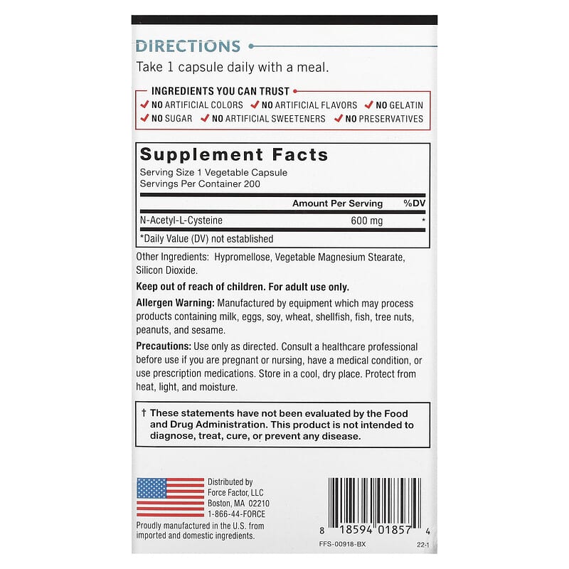 Inform when this item available: Force Factor, Fundamentals, NAC, N-Acetyl-L-Cysteine, 600 mg, 200 Vegetable Capsules - 200 Count / 0.24 / 0.53