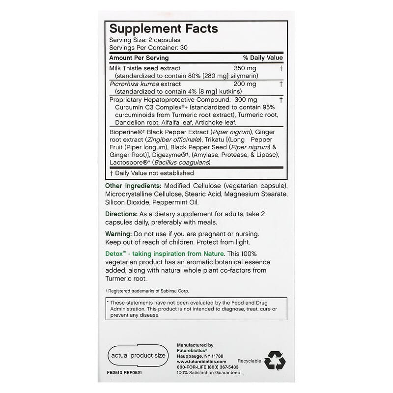 Futurebiotics, Detox, Daily Liver Support, 60 Vegetarian Capsules - 60 Count / 0.08 / 0.18