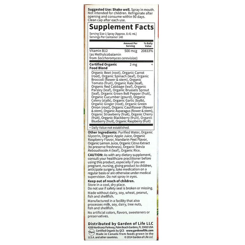 Inform when this item available: Garden of Life, Organics, B-12 Organic Spray, Raspberry, 2 fl oz (58 ml) - 59.15 ml / 0.09 / 0.2
