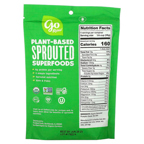 Inform when this item available: Go Raw, Organic Sprouted Pumpkin Seeds, Sea Salt, 4 oz (113 g) - 113.4 g / 0.12 / 0.26