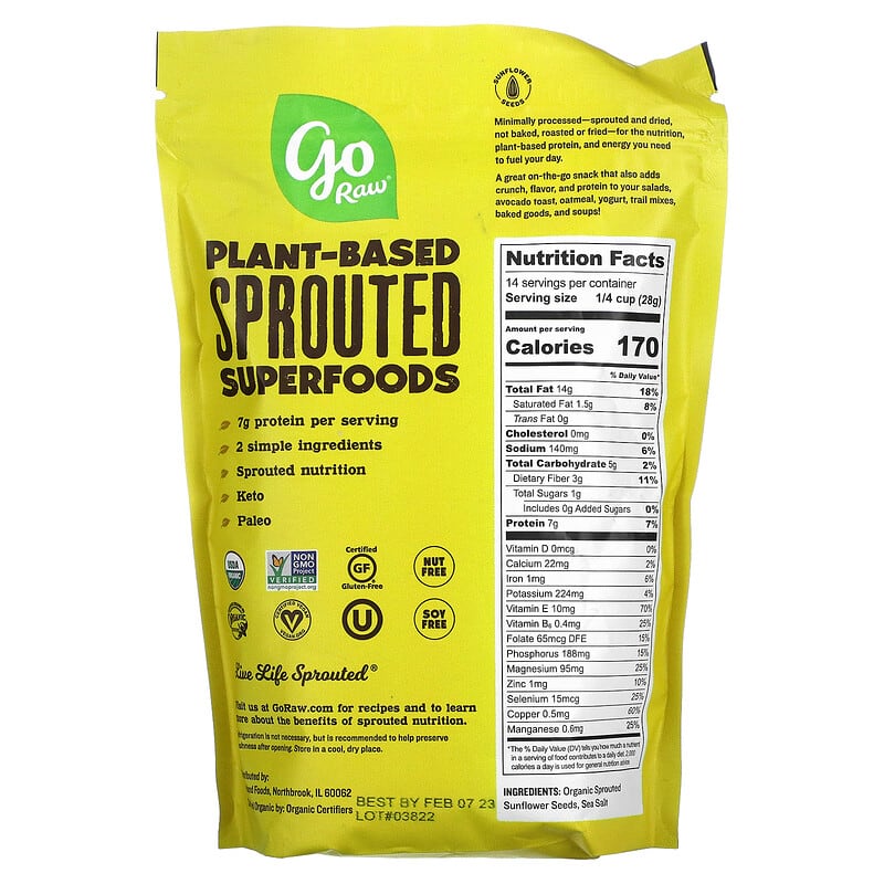 Inform when this item available: Go Raw, Organic Sprouted Sunflower Seeds with Sea Salt, 14 oz (397 g) - 396.89 g / 0.41 / 0.91