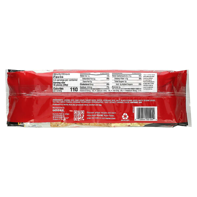 KA-ME, Rice Crackers, Black Sesame and Soy Sauce, 3.5 oz (100 g) - 99.22 g / 0.13 / 0.29