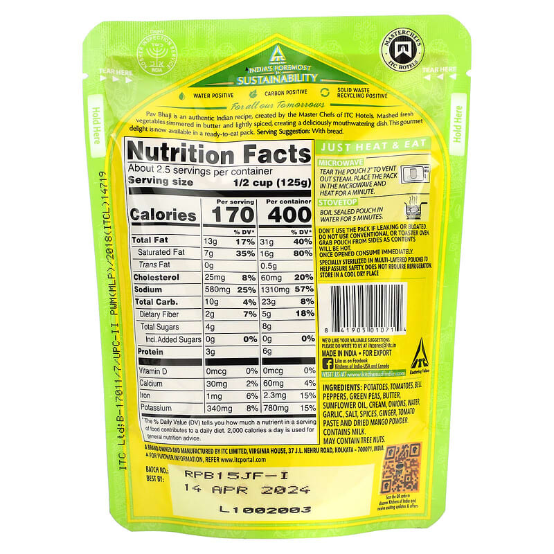 Inform when this item available: Kitchens of India, Pav Bhaji, Mashed Vegetable Curry, Medium, 10 oz (285 g) - 283.5 g / 0.29 / 0.65