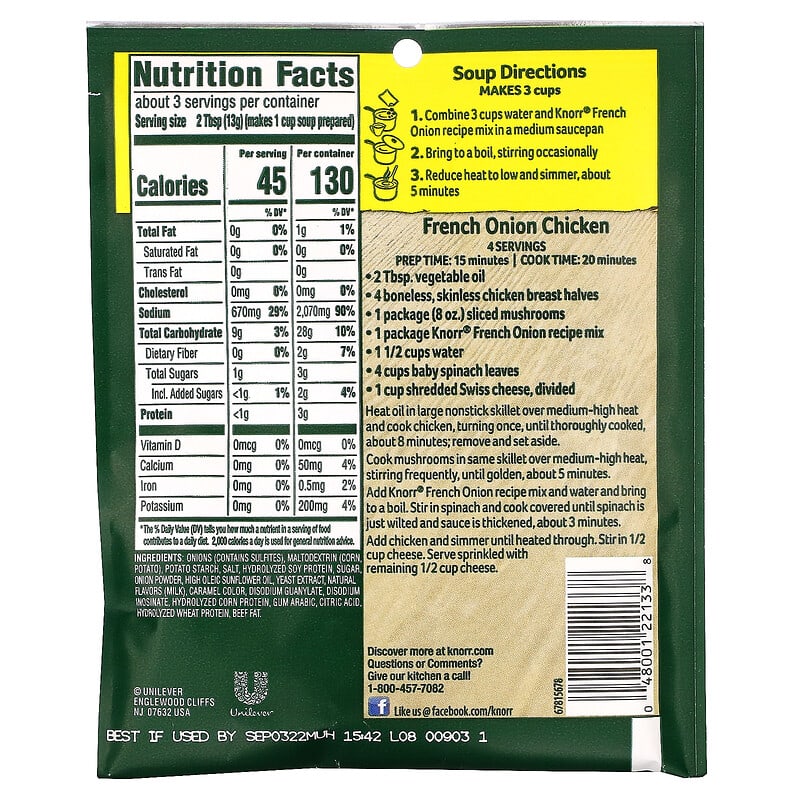 Inform when this item available: Knorr, French Onion Recipe Mix, 1.4 oz (40 g) - 39.69 g / 0.05 / 0.1