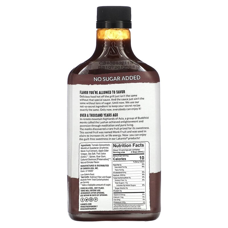 Inform when this item available: Lakanto, Monkfruit Sweetened BBQ Sauce, Original, 13 fl oz (384 ml) - 384.46 ml / 0.44 / 0.97