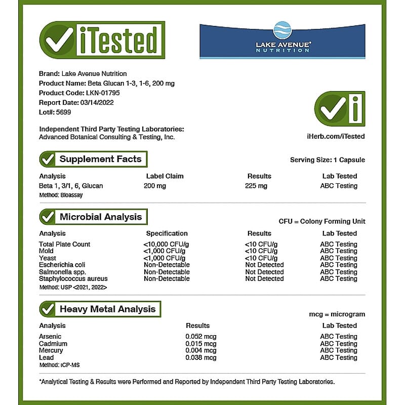 California Gold Nutrition, Beta Glucan 1-3, 1-6, 200 mg, 60 Veggie Capsules - 60 Count / 0.06 / 0.13