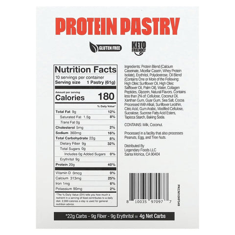 Legendary Foods, Protein Pastry, Hot Fudge Sundae, 10 Pack, 2.2 oz (61 g) Each - 10 Count / 0.7 / 1.55