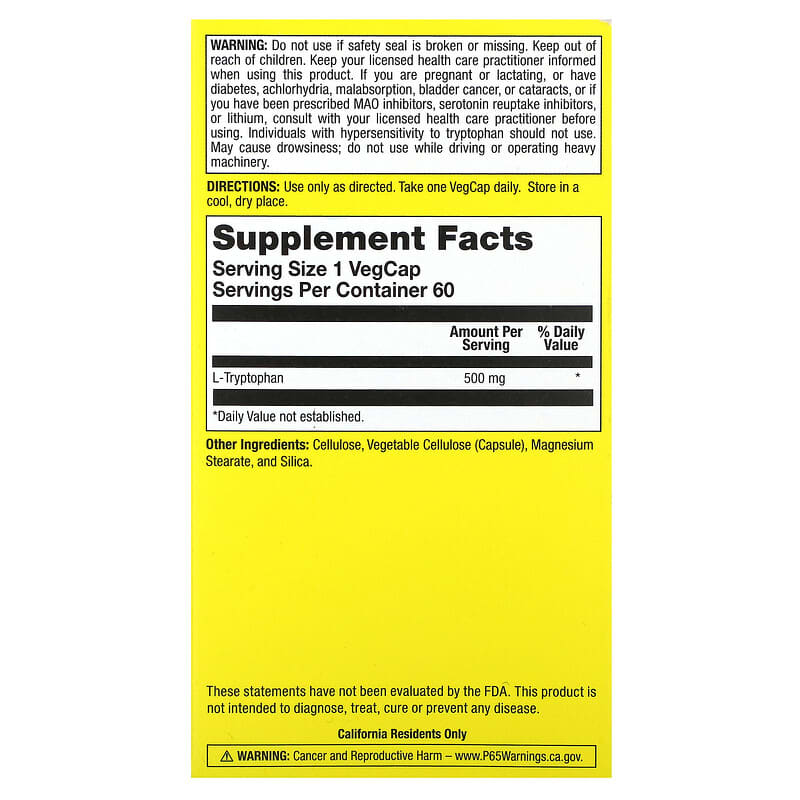 Inform when this item available: Natural Balance, Happy Camper, L-Tryptophan, 500 mg, 60 VegCaps - 60 Count / 0.07 / 0.15