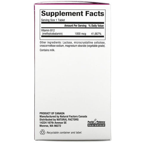 Inform when this item available: Natural Factors, B12, Methylcobalamin, 1,000 mcg, 90 Chewable Tablets - 90 Count / 0.05 / 0.1