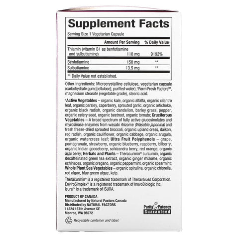 Inform when this item available: Natural Factors, Benfotiamine plus Sulbutiamine, 30 Vegetarian Capsules - 30 Count / 0.05 / 0.105