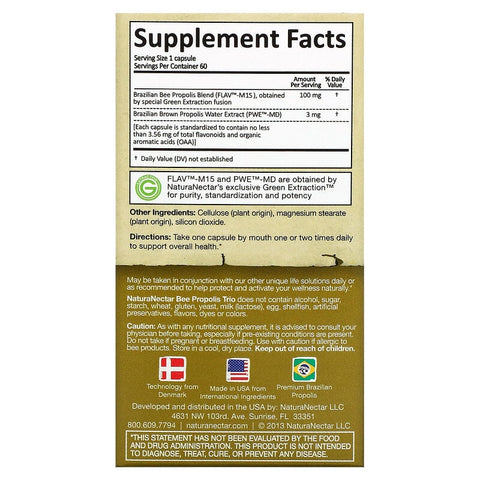 NaturaNectar, Bee Propolis Trio, 60 Vegetable Capsules - 60 Count / 0.16 / 0.35