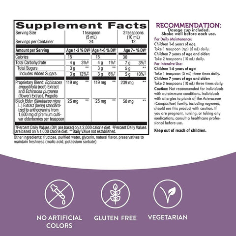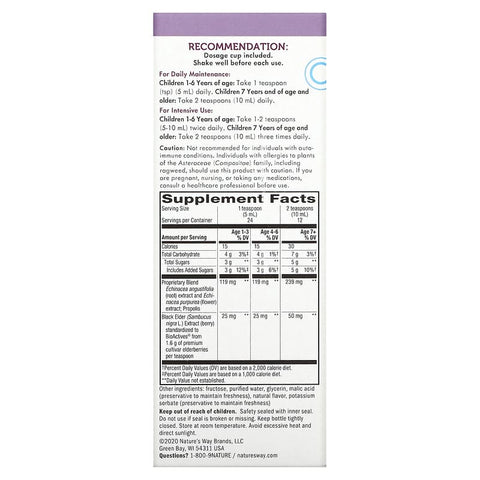 Nature's Way, Sambucus® Kids, Immune Syrup Elderberry with Propolis & Echinacea, Ages 2+, 4 fl oz (120 ml) - 118.29 ml / 0.18 / 0.4