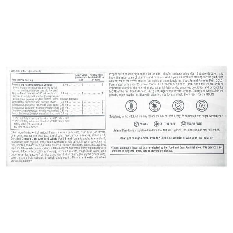 Inform when this item available: NaturesPlus, Animal Parade Gold®, Children's Chewable Multivitamin Supplement, Cherry, Grape & Orange, 120 Animal-Shaped Tablets - 120 Count / 0.27 / 0.6