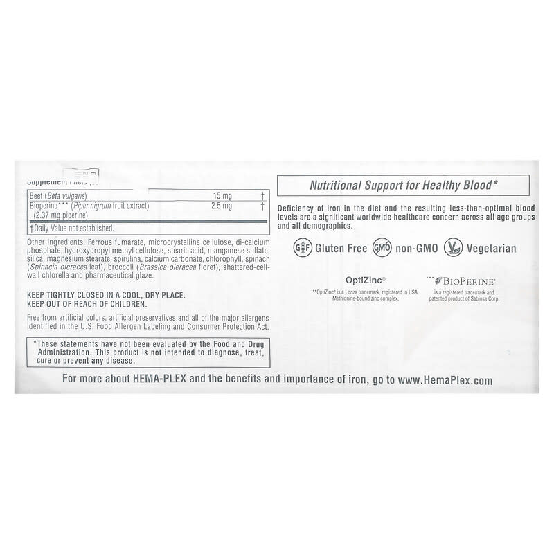 NaturesPlus, Hema-Plex, Iron with Essential Nutrients for Healthy Red Blood Cells, 30 Slow Release Tablets Sale