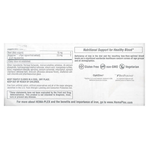 NaturesPlus, Hema-Plex, Iron with Essential Nutrients for Healthy Red Blood Cells, 30 Slow Release Tablets - 30 Count / 0.08 / 0.175