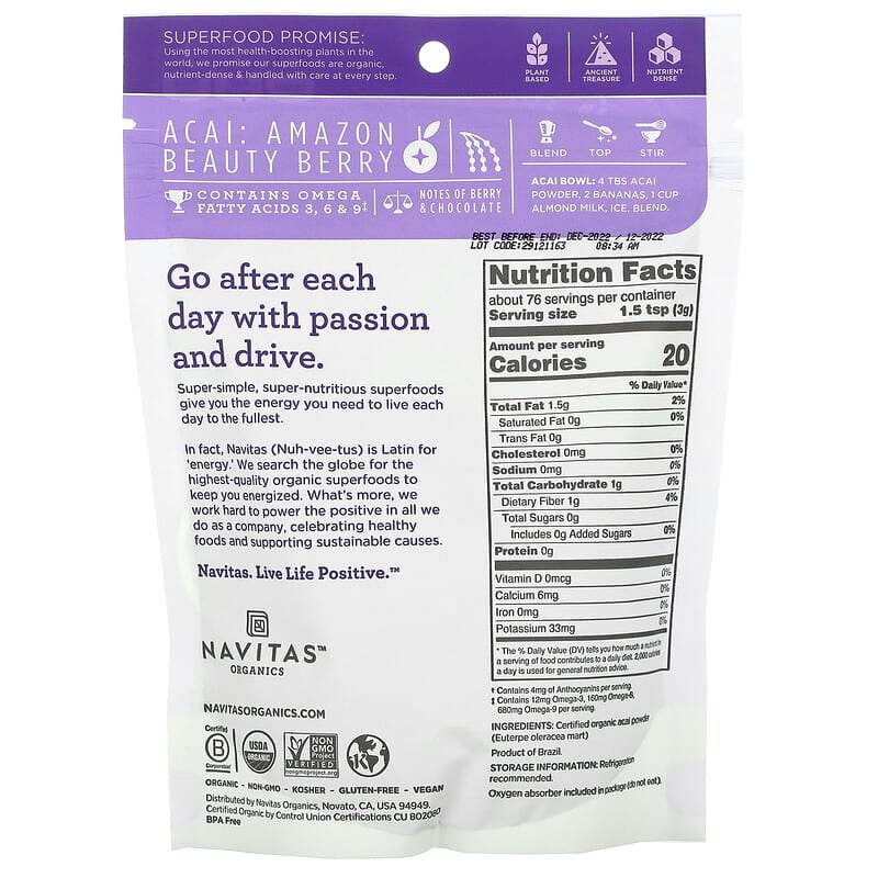 Inform when this item available: Navitas Organics, Organic Acai Powder, 8 oz (227 g) - 226.8 g / 0.24 / 0.53