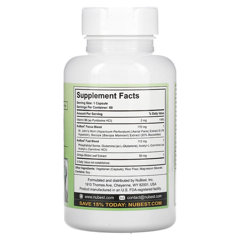 Inform when this item available: NuBest, Nubrain, Brain Booster, 60 Vegetarian Capsules - 60 Count / 0.07 / 0.15