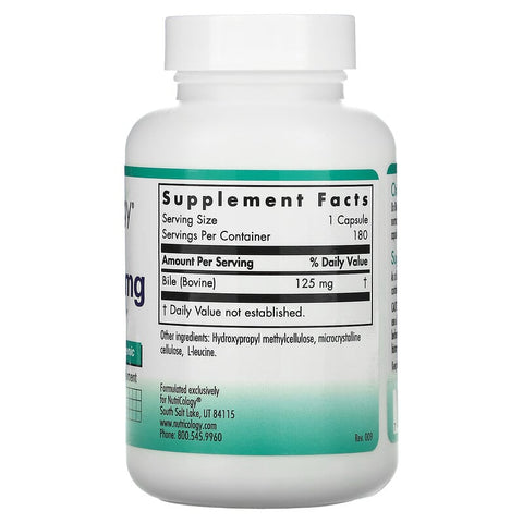 Nutricology, Ox Bile, 125 mg, 180 Vegicaps - 180 Count / 0.07 / 0.15