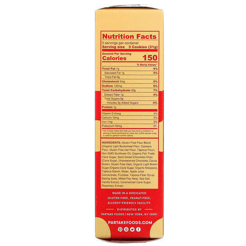 Inform when this item available: Partake, Soft Baked Cookies, Chocolate Chip, 5.5 oz (150 g) - 155.92 g / 0.2 / 0.43