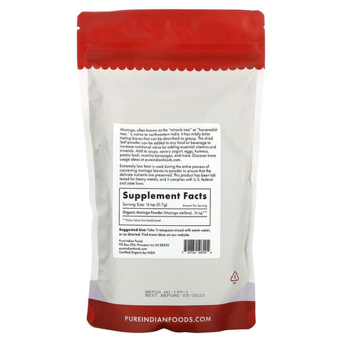 Inform when this item available: Pure Indian Foods, Organic Moringa Powder, 8 oz (227 g) - 226.8 g / 0.25 / 0.55