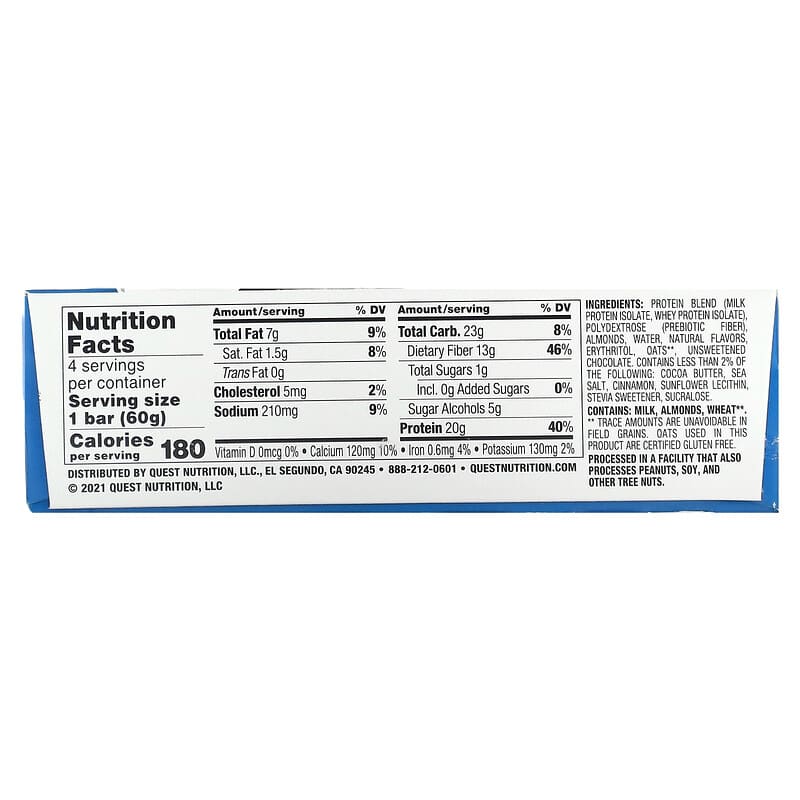 Inform when this item available: Quest Nutrition, Protein Bar, Oatmeal Chocolate Chip, 4 Bars, 2.12 oz (60 g) Each - 4 Count / 0.28 / 0.615