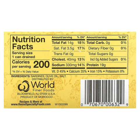 Inform when this item available: Reese, Fancy Sardines, In 100% Olive Oil, 4.4 oz (124 g) - 124.74 g / 0.16 / 0.345