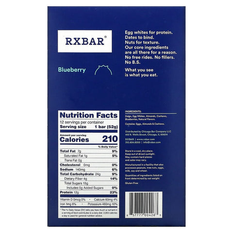 RXBAR, Protein Bar, Blueberry, 12 Bars, 1.8 oz (52 g) Each Sale