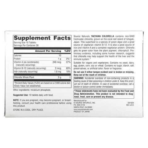 Source Naturals, Yaeyama Chlorella®, 300 Tablets - 300 Count / 0.09 / 0.2