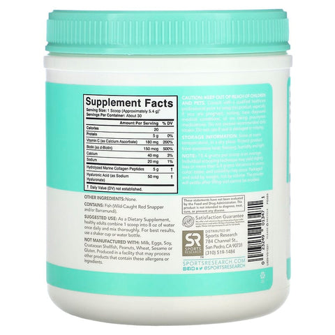 Sports Research, Marine Collagen Complex, Unflavored, 5.8 oz (164 g) - 163.01 g / 0.23 / 0.5