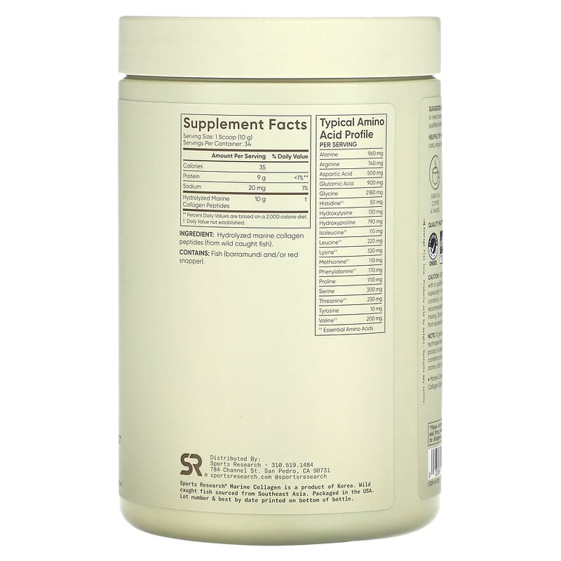 Inform when this item available: Sports Research, Marine Collagen, Unflavored, 12 oz (340 g) - 340.19 g / 0.43 / 0.95
