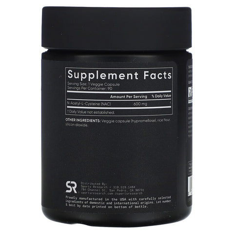 Inform when this item available: Sports Research, NAC, N-Acetyl-Cysteine, 600 mg, 90 Veggie Capsules - 90 Count / 0.11 / 0.25