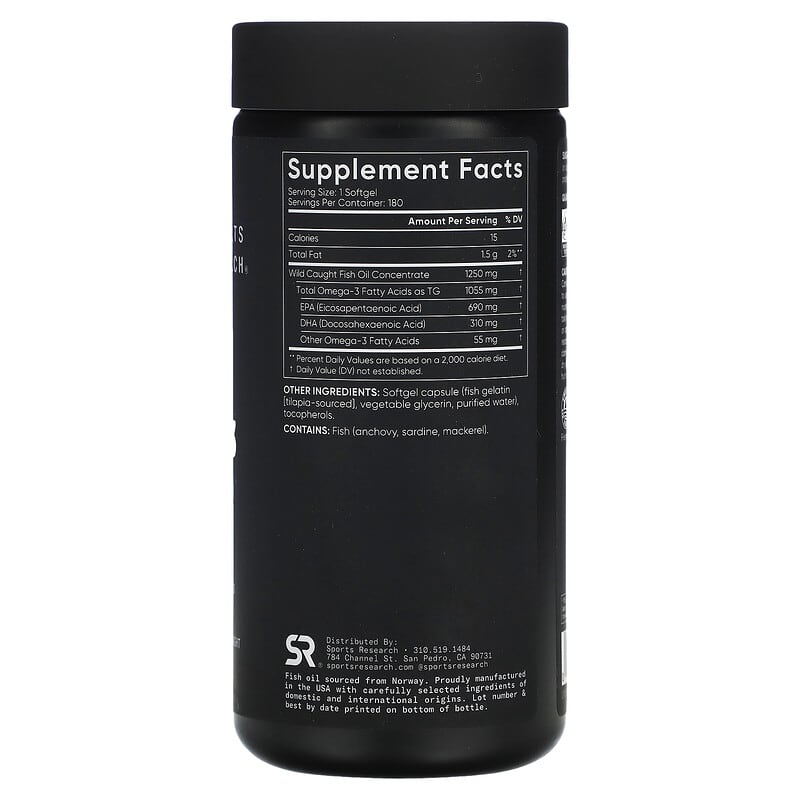 Inform when this item available: Sports Research, Omega-3 Fish Oil, Triple Strength, 180 Softgels - 180 Count / 0.36 / 0.8